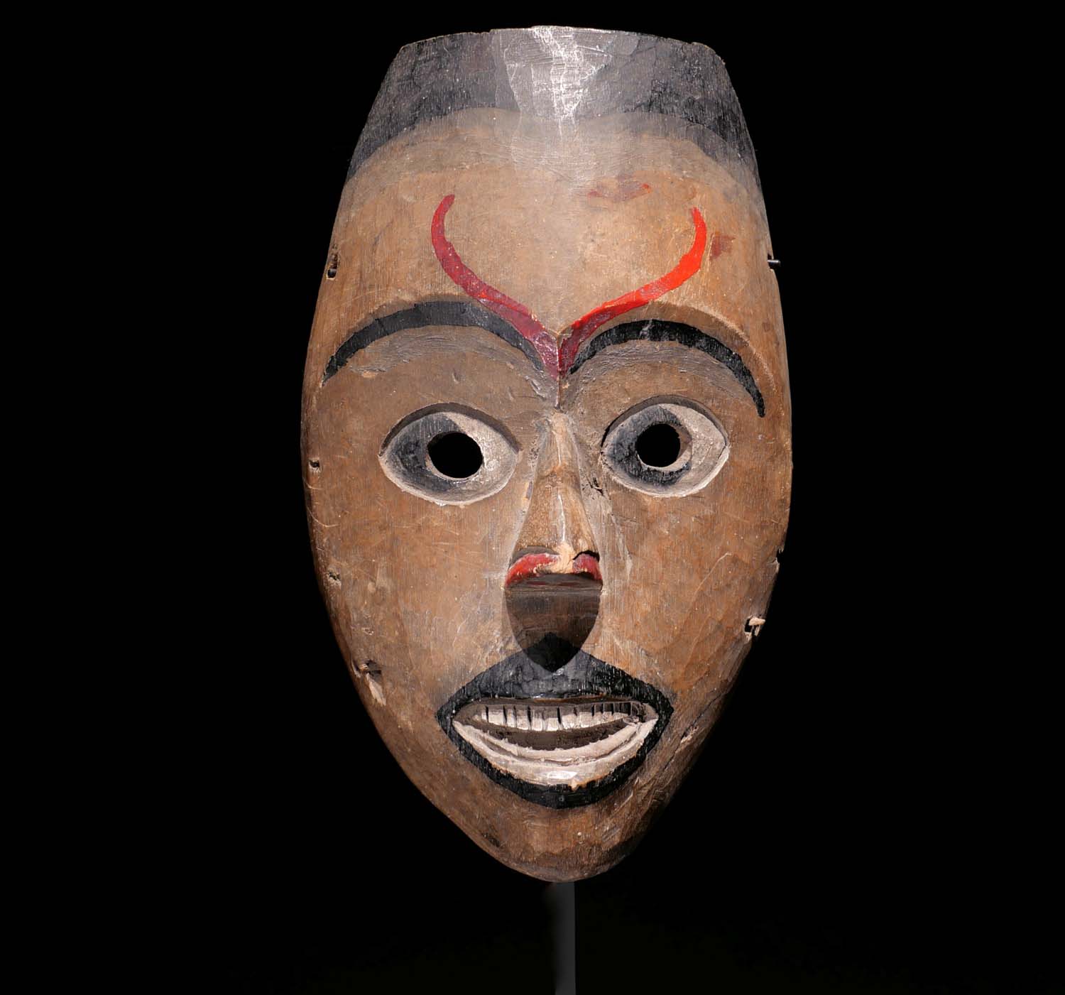 Gesichtsmaske. Kenyah Dayak, Westkalimantan. Frühes 20. Jhdt. Holz mit Farb-Pigmenten. H 28,7 cm. Priv.Slg. Irene Lim-Reid, Bareo Gallery, Singapur. 1800.- €
