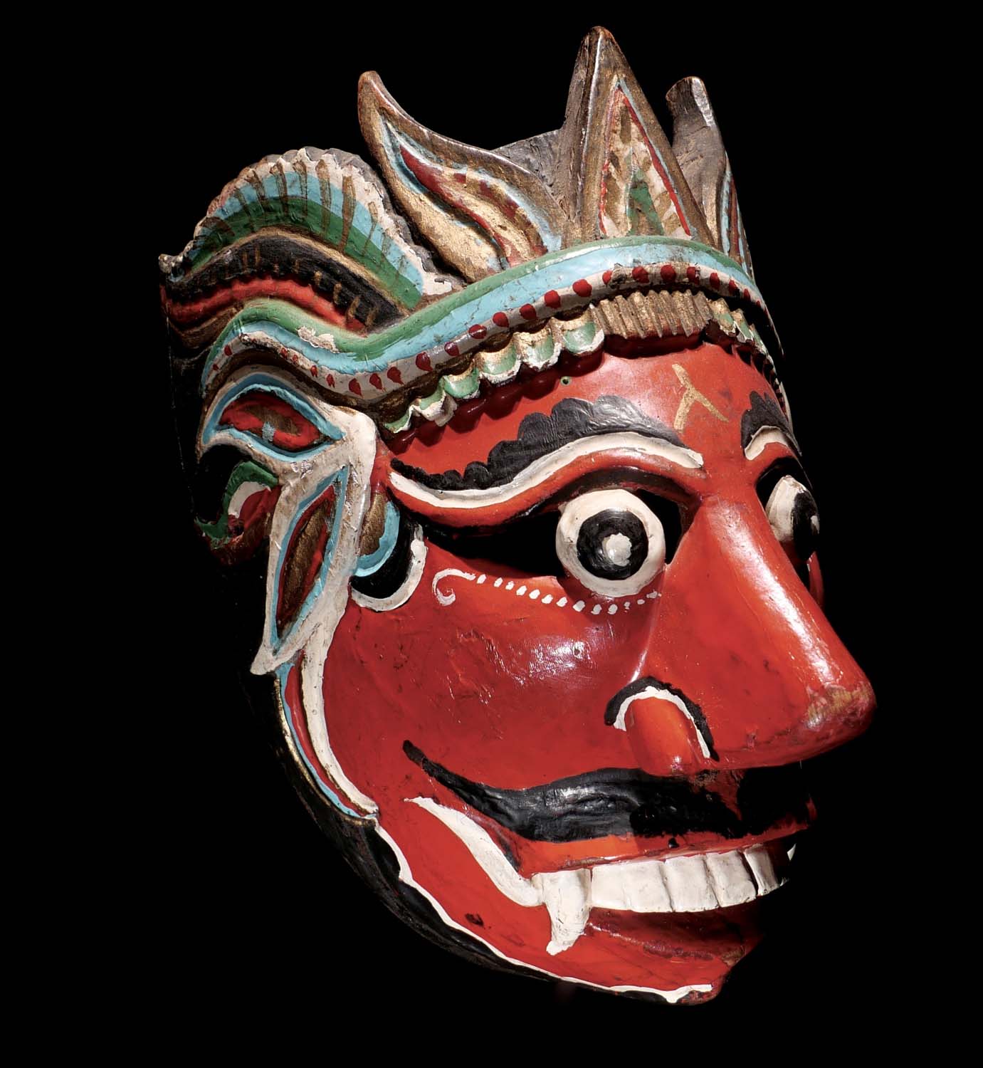 Ausdrucksstarke Telek-Tanz-Maske, möglicherweise ein Gandharva, Südbali. Holz, polychrome Pigmente. 19. – frühes 20. Jhdt. H 20 cm, B 20 cm. Priv. Slg. Spanien (1970er Jahre) 4500.- €