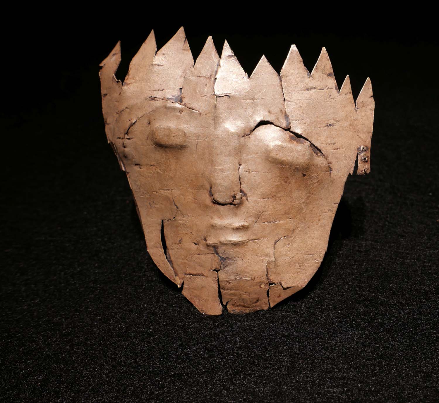 Archaische Totenemaske. Gehämmerte Gold-Silber Legierung. 8 Karat. Vermutlich 500 vor Chr. 8,6 cm x 8,6 cm. Priv.Slg. Niederlande.