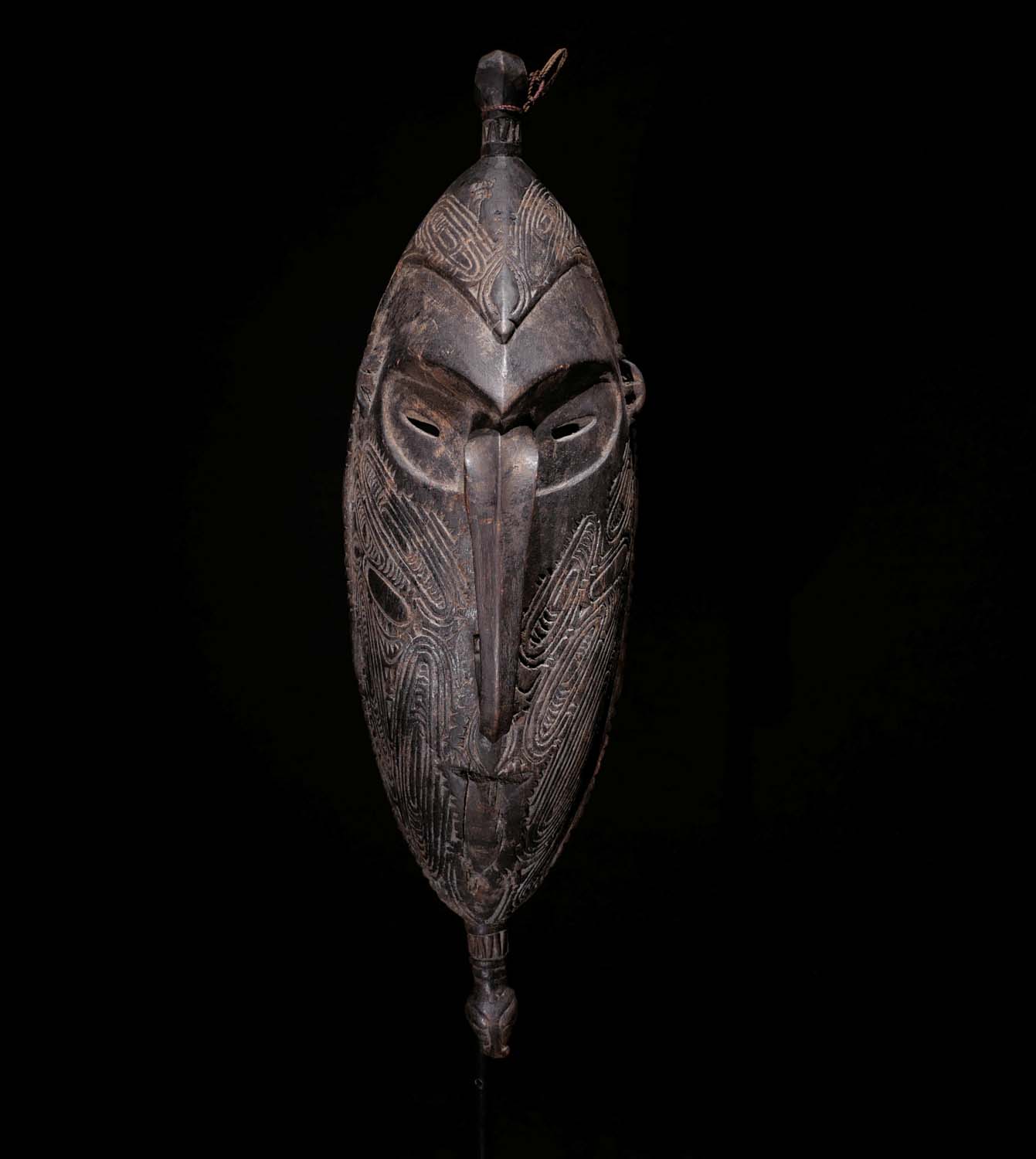 Tanzmaske. Holz, geschwärzt. Diese Masken wurden am Tanzgewand aufgebunden. Sepik Region / PNG. Frühes 20.Jhdt. Ex.Coll. Ulrich Kortmann, Priv.Slg Berlin. 2900.- €