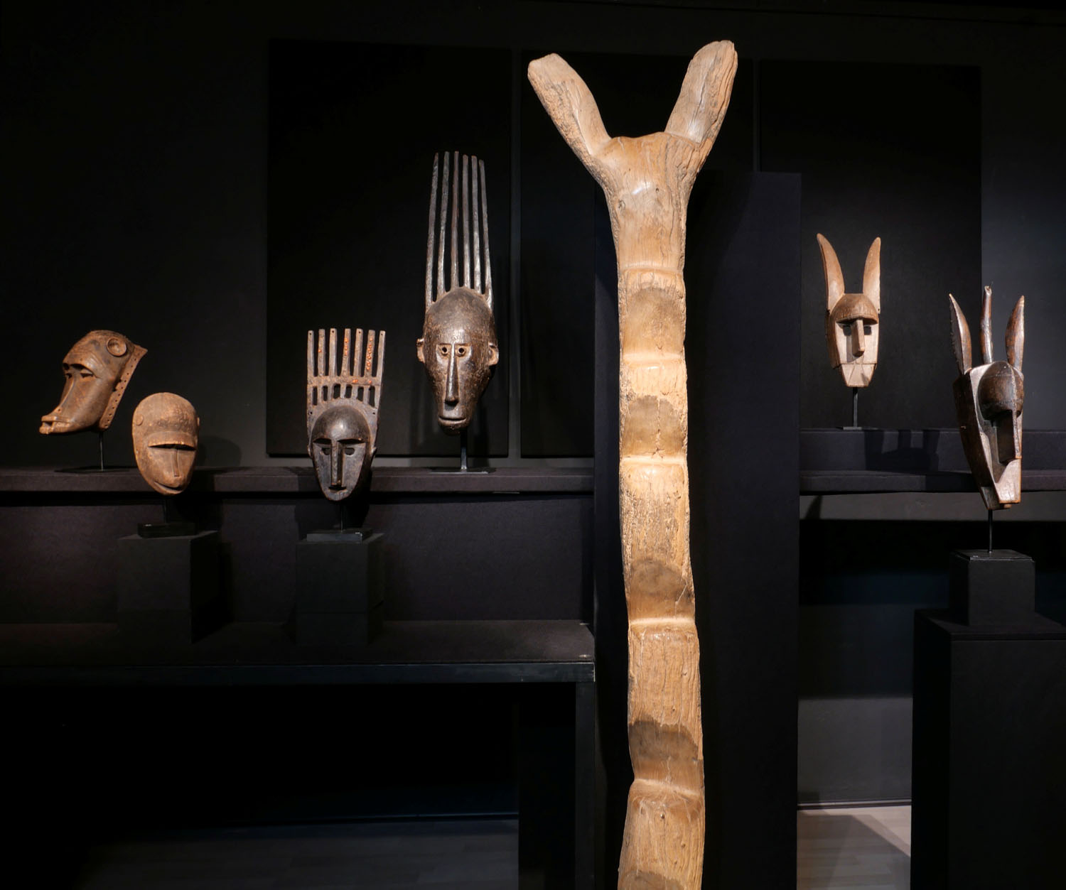Tanz- Masken, Bambara, Holz und Baumleiter, Holz. Dogon / Mali.
